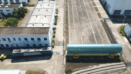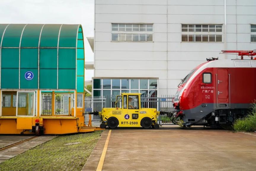 走进中国铁路广州局集团有限公司广州机车检修段,不断移动的巨型“蓝色圆筒”引人注目。机车移车台长32米、宽8米,载重可达160吨,是一种用于在不同检修库间快速转运机车的专用转轨作业设备。