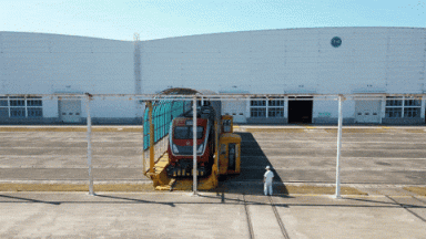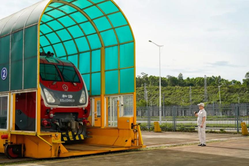 机车需要运往哪个检修库,机车移车台就将其移动到对应的轨道上,并精准对接。